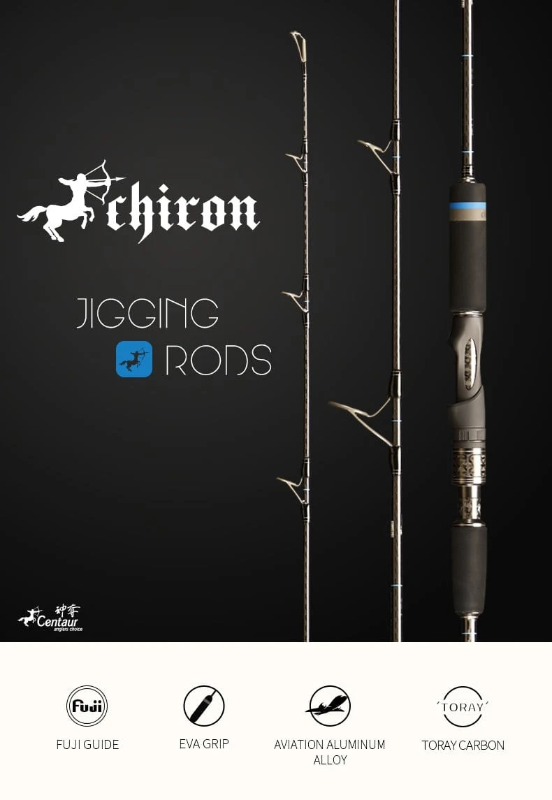 The Chiron Spinning series jigging rods from Centaur is likely the finest offshore rods money can buy. Overbuilt with imported Japanese components (including Fuji KW guides and hard EVA foam) on an incredible, reinforced Toray carbon blank, this rod is made to handle anything from kingfish, amberjack and grouper all the way to yellowfin and bluefin tuna. Paired with a top-quality spinning reel and heavy-duty braided line, these rods are flat-out powerful.