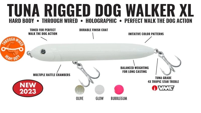 Our lasted addition to the Dog Walker Series, The Floating Slider offers classic Walk The Dog Action in a long-casting Tuna Grade Body. Ideal for targeting various species feeding on oversized forage, this massive topwater draws fish in from a distance. Based on our popular Charter Grade Slider Series, this Floating Topwater offers easy-to-impart walk-the-dog action with slight rod tip twitches on a slackline.