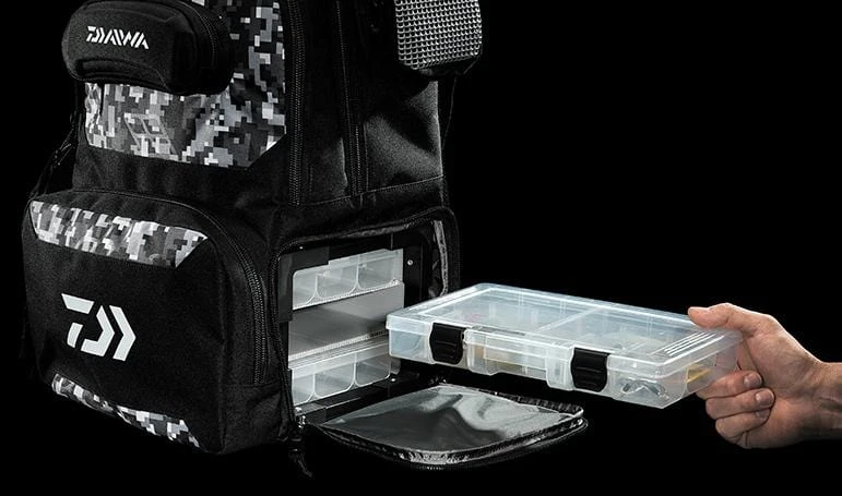 The Daiwa Tactical Tackle Backpack is made with a ridged non-collapsible frame, double reinforced stitching and corrosion resistant zippers.
