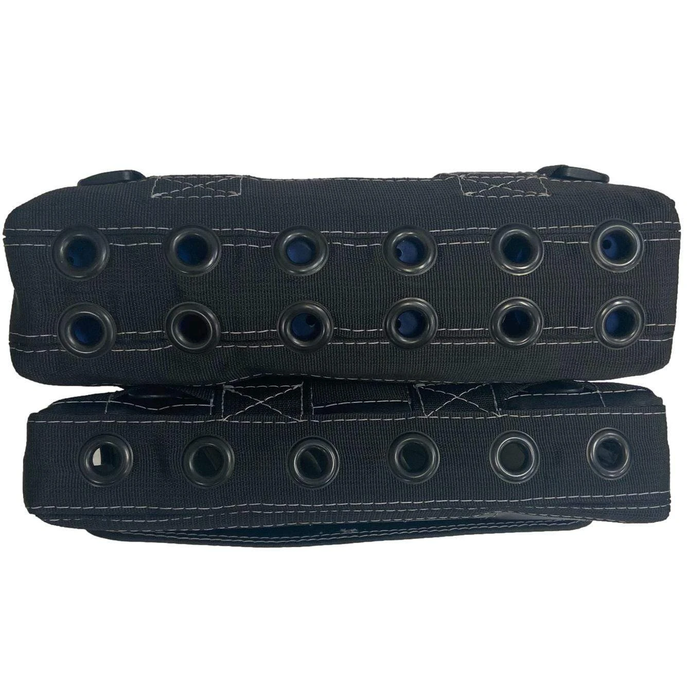 This four-tube bag features four 3″ diameter x 8″ tall tubes, several slots for bucktail/tins, and a small storage pocket for leaders and other accessories. The main bag also has MOLLE attachment points on the front and two sides, which gives the user the ability to quickly change out its configuration. The front pouch is attached using the MOLLE system to the main bag, but easily can be removed altogether or ran separately on a 2″ surf belt with its belt loops. Twelve 1/2″ sized grommets expel water quickly from the bag, leaving minimal if any water weight after going for a swim.