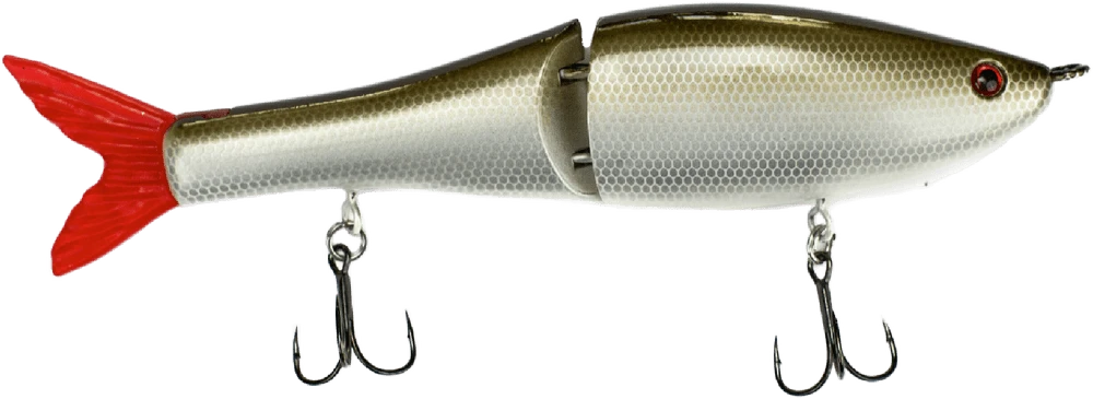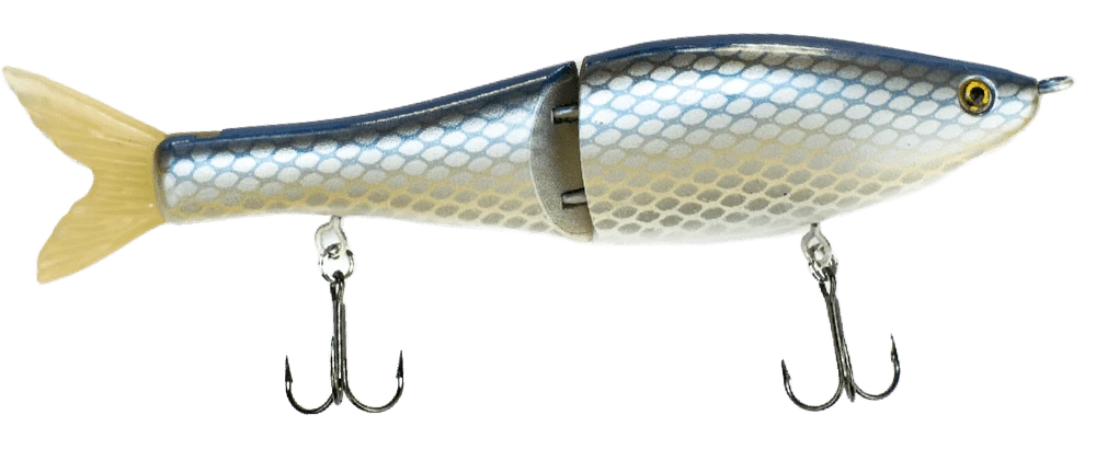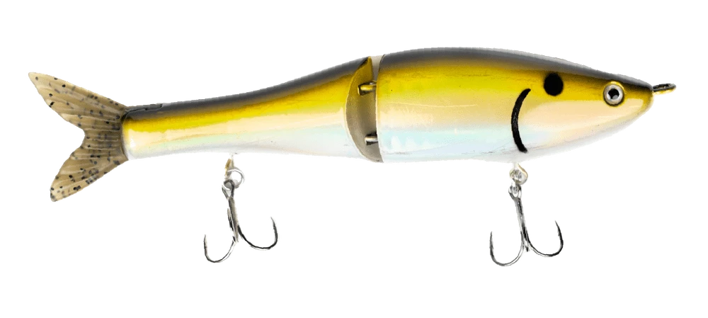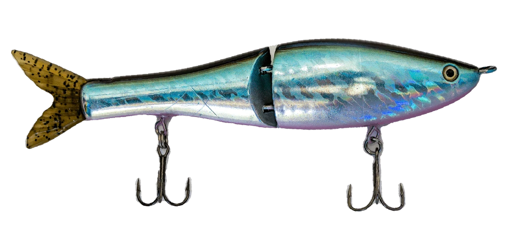 Poppa Pete is a silent slow sinking glide bait weighing 5 Ounces and 10 inches in length equipped with heavy-duty hardware, size 2/0 hooks, and rotating hangers. The tails are easily replaceable. Papa Pete has a nice wide glide on slow reel cranks and then can be fished fast for an erratic baitfish action and sinks extremely slow in a level position.