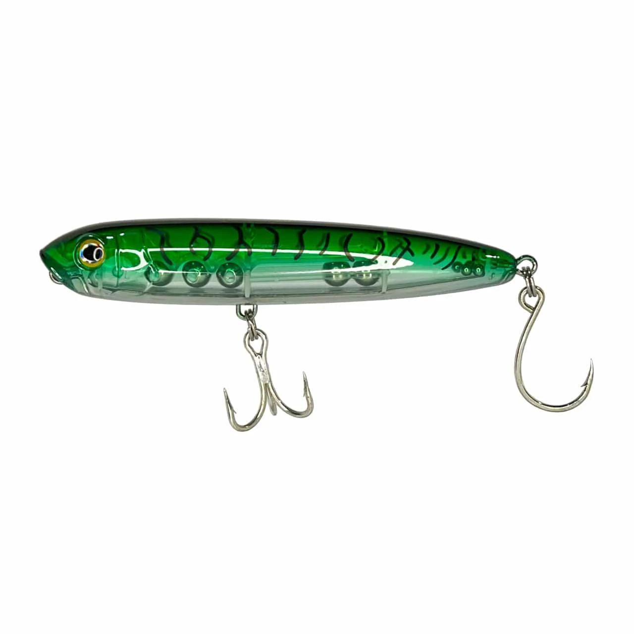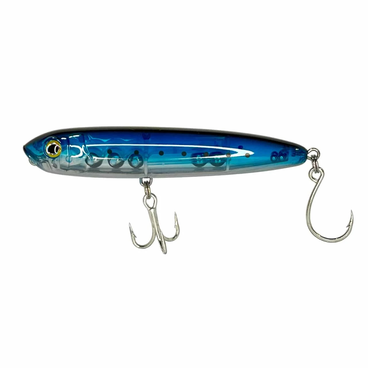 Designed specifically to maximize topwater strikes, the X-Walk is a game-changer. With its exceptional “walk-the-dog” action and strategically placed rattle chambers, this lure is guaranteed to ignite explosive strikes from various species. Measuring 6″ in length and weighing 2 ounces, the X-Walk boasts effortless casting and is the ideal size for enticing Striped Bass, Bluefish, Snook, Tarpon, and Tuna. Its robust body, through-wired construction, and reliable hardware ensure that you can start fishing immediately after unboxing.