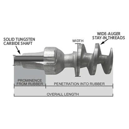 The 3000B stud is perfect for light weed and slime. They do not stick out of the boot seriously far, nor do they penetrate boots as deep, keeping them a great option for the light duty surfcaster or jetty fisherman. A unique wide-auger shank do not bend, back-out or fold over in the sole like other narrow-threaded studs. Grip Studs feature a tough, solid tungsten carbide core-to-tip shaft and a rust-resistant finish, making them the perfect stud for rock hoppers! The unique installation notches of the Grip Studs design ensure easy installation and removal with the handy power tool. Grip Studs surf fishing studs work in almost any rubber or felt sole and are available in both aggressive and standard sizes ensuring compatibility with your boot sole and optimizing traction based on your surf fishing conditions. Stud penetration is 7.9mm leaving 3.5mm of exposed stud from your boot.