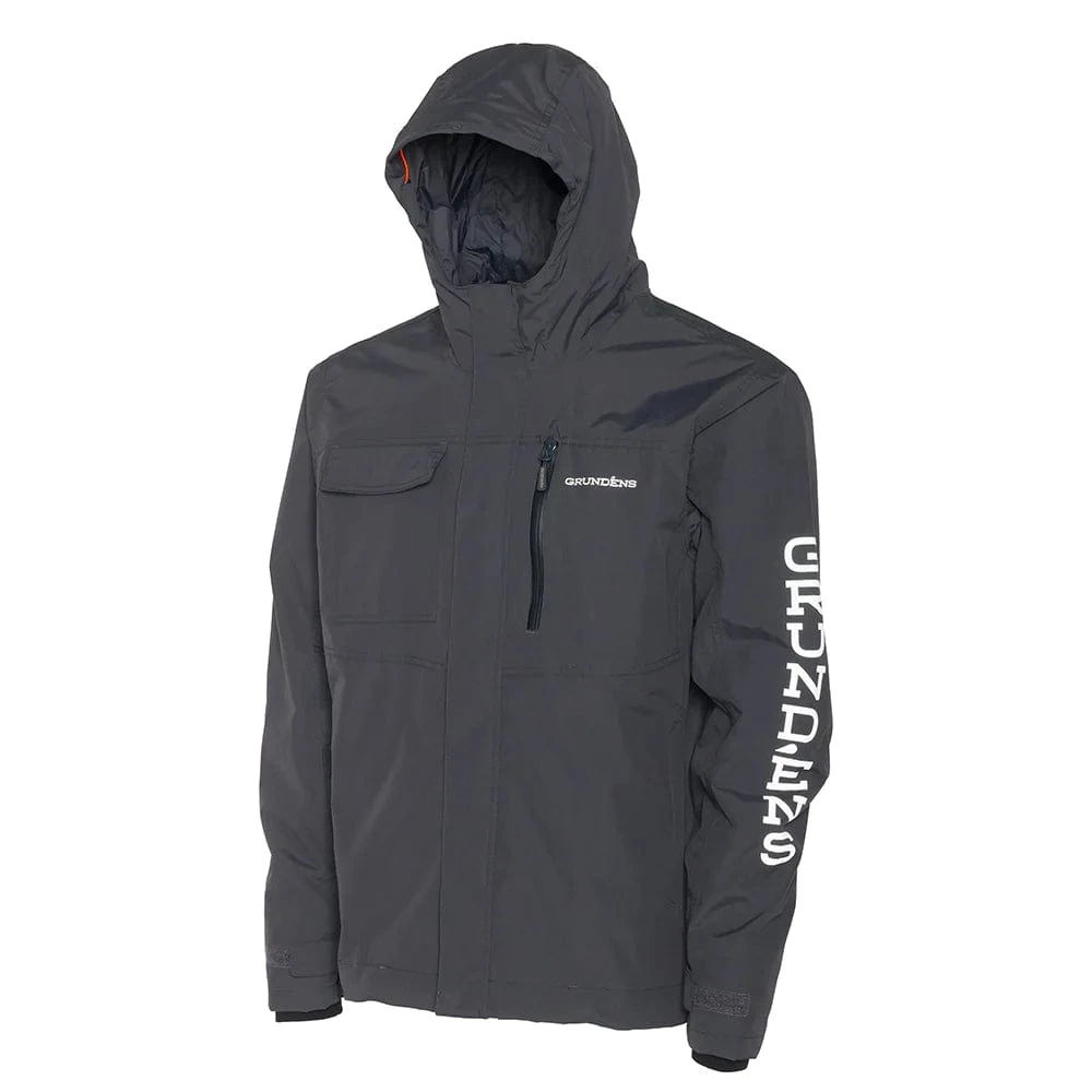 The Grundens Transmit Jacket is a great option for the fisherman and other outdoor enthusiasts looking for a durable and waterproof protection with breathability for those warmer days in adverse conditions. A hung taffeta lining gives next to skin comfort while keeping you dry, while its durable 2L face fabric is perfect to to resist wear that often happens in the chest area. Internal neoprene cuffs seal out water from reaching inside, keeping you dry and comfortable. A fully adjustable hood meshes perfectly around your head or a baseball cap, and adjustable elastic suspenders keep this jacket very form fitting.