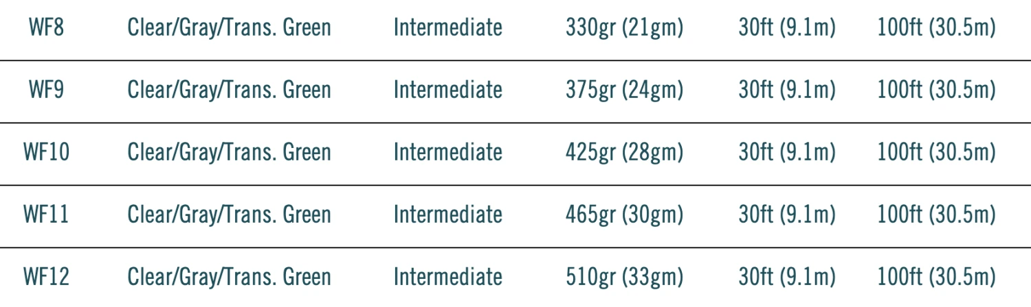 RIO’s printed line marking system that allows anglers to quickly and easily identify each line.