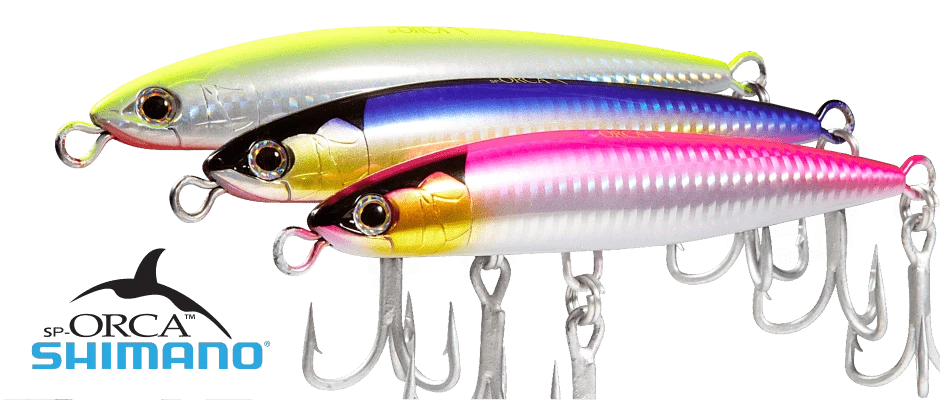 Shimano Orca Sinking Pencil is a great sub-surface pencil designed to sink in a horizontal position. Retrieving it causes an enticing side-to-side wobble.