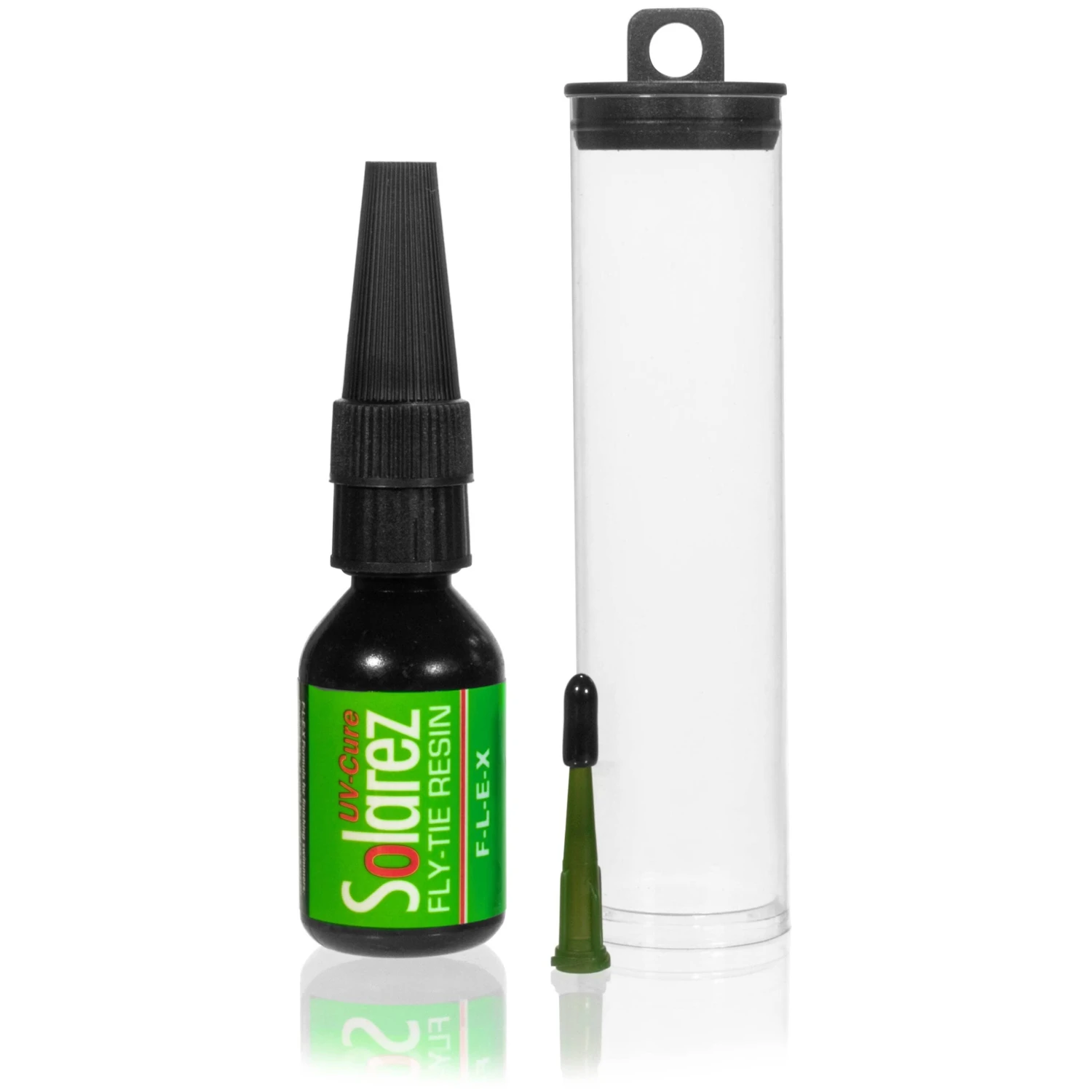 The “F-L-E-X” version is great for all kinds of flies, it is especially valuable for anglers who fish around structure as it is less likely to crack or brake after an accidental encounter with a rock or jetty. It can also be used to repair waders or coat knots. *Tying note, this resin requires slightly more irradiation than other resins to fully cure, give it some extra time under your UV light*.